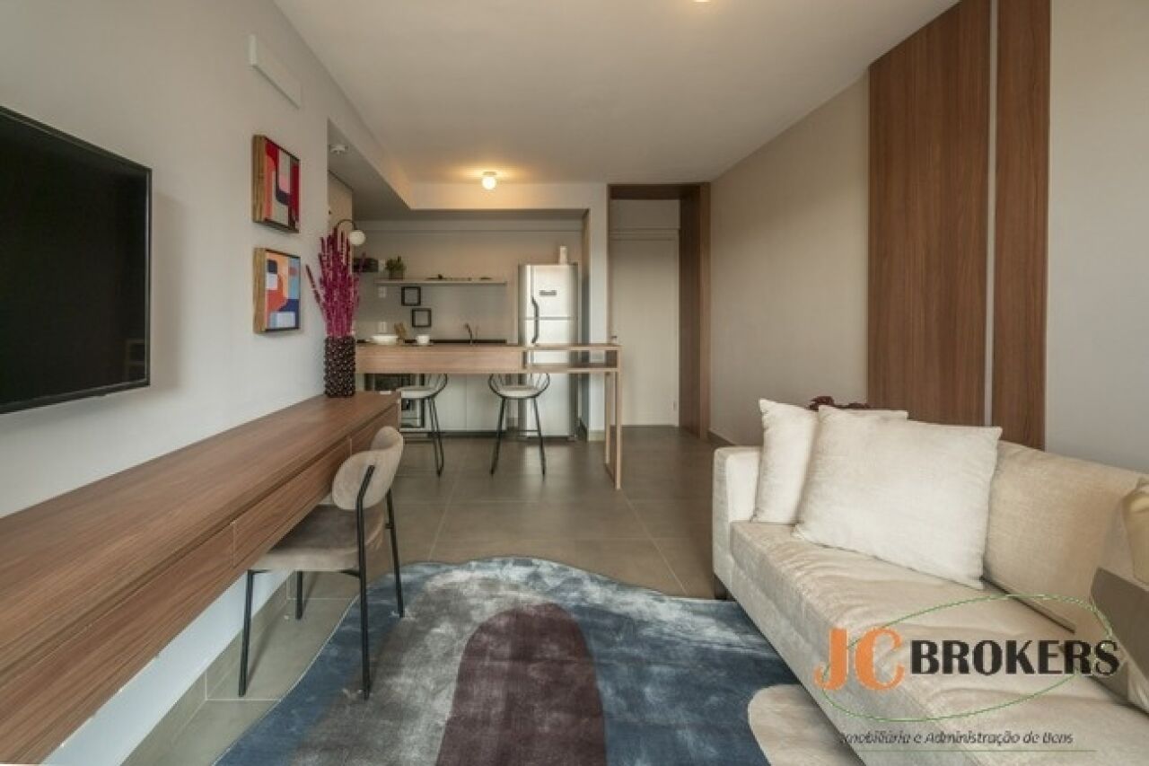 DESCRIÇÃO: Apartamento com 45m² de área útil, sala, varanda, cozinha integrada a sala, 1 dormitório, banheiro social, 1 vaga de garagem
