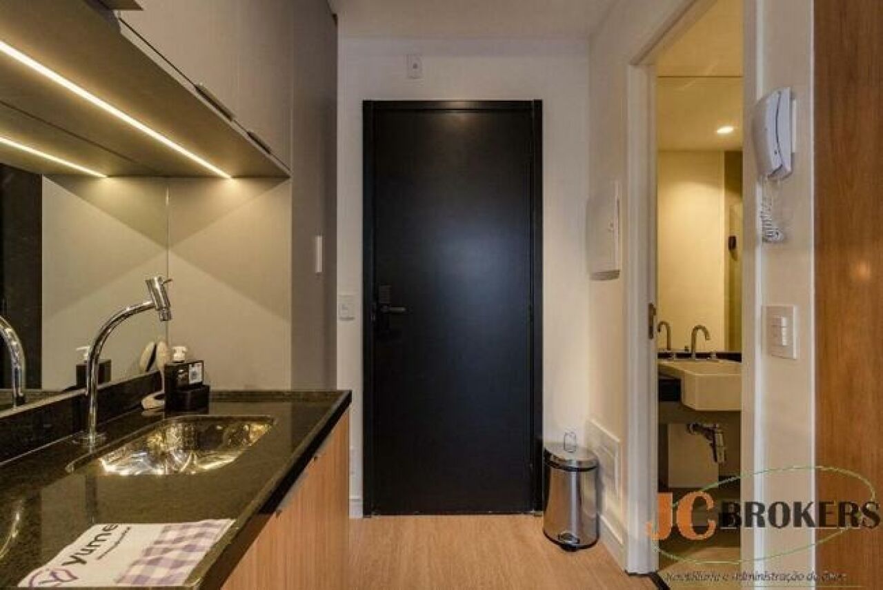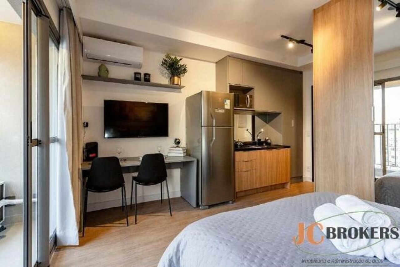 DESCRIÇÃO: Studio com 25 m² de área útil, sala, quarto e cozinha em ambientes integrados, varanda, 1 banheiro. Sem vaga.