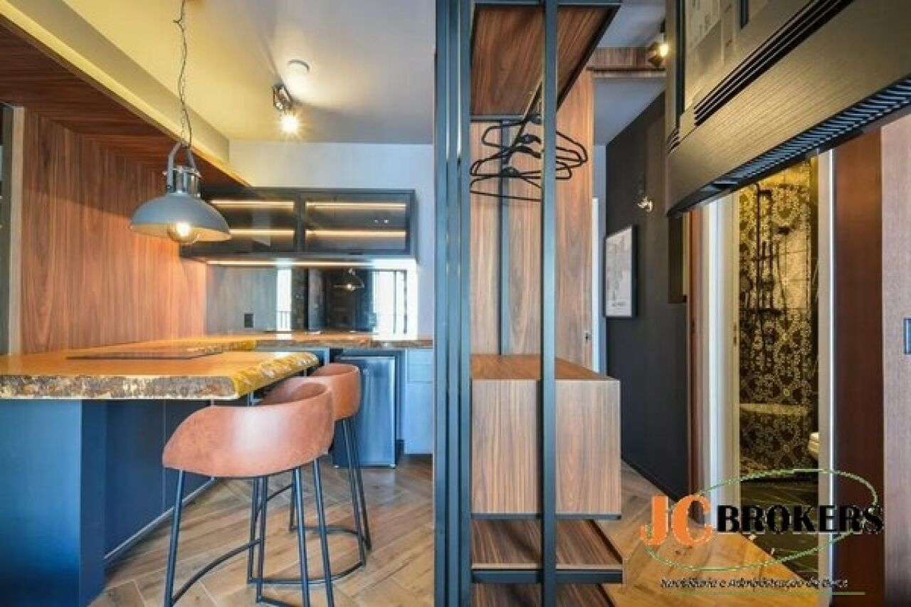 DESCRIÇÃO: Studio com 28 m² de área útil, Mobiliado, 1 Dormitório com ar condicionado, Cozinha repleta de armários integrada ao living, Varanda, 1 Banheiro