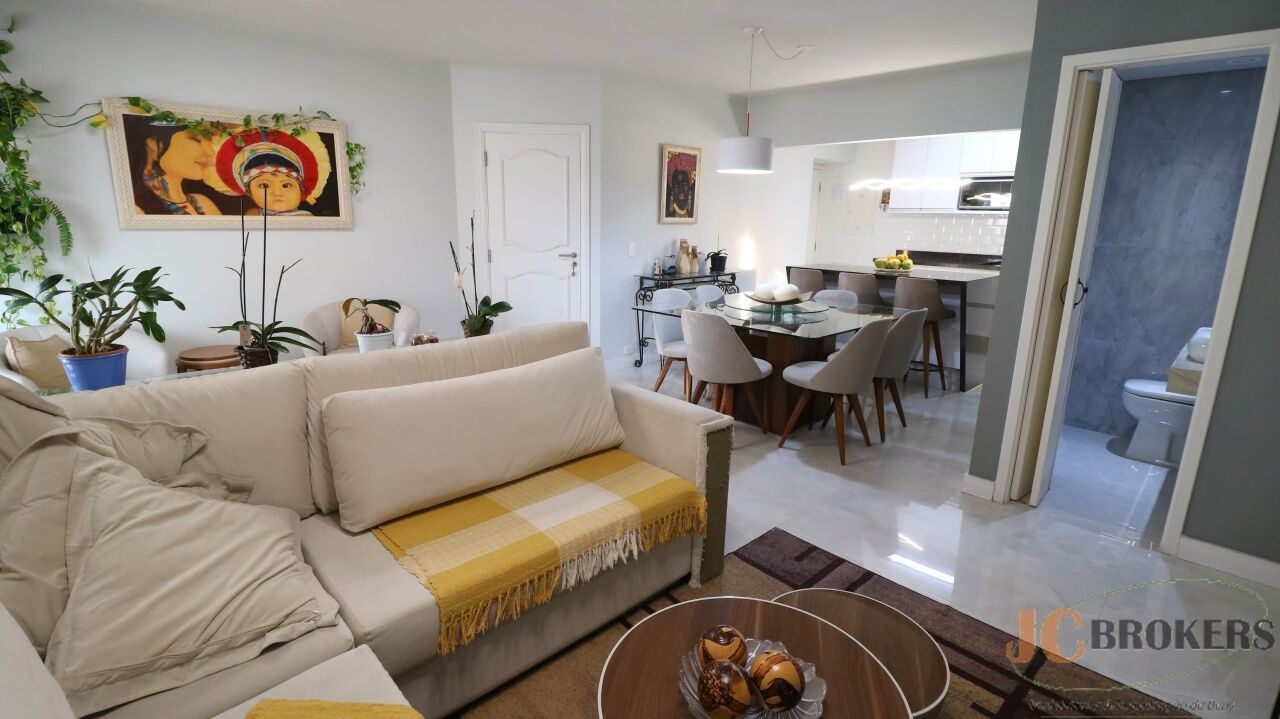 DESCRIÇÃO: Apartamento com 90m² de área útil, sala com varanda integrada, com 2 dormitórios sendo 2 suítes, (3º dormitório foi transformado em sala de tv), Lavabo, 3 Banheiros no total, Sala, Cozinha, área de serviço e quarto de empregada revertido para escritório, 2 vagas.