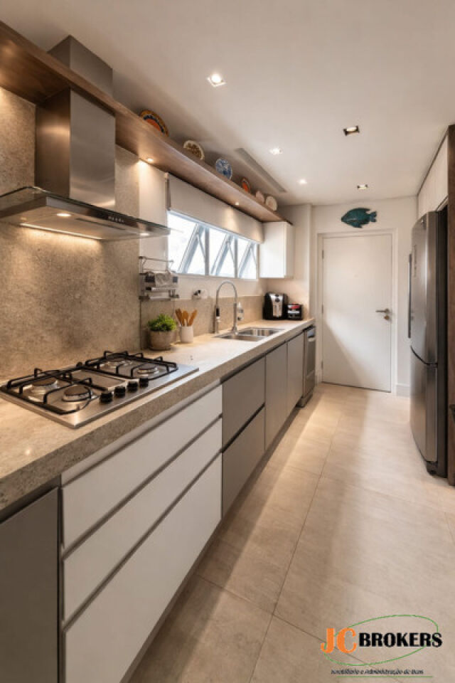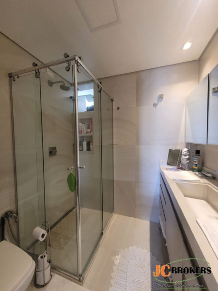 DESCRIÇÃO: Apartamento com 113 m² de área útil, 3 Dormitórios, sendo 2 suítes, Suíte com closet, Dormitórios com armário embutido, Sala para 2 ambientes com ar condicionado, Cozinha repleta de armários, Varanda, Lavabo, Área de serviço, 2 Vagas, Andar alto, 3 Banheiros