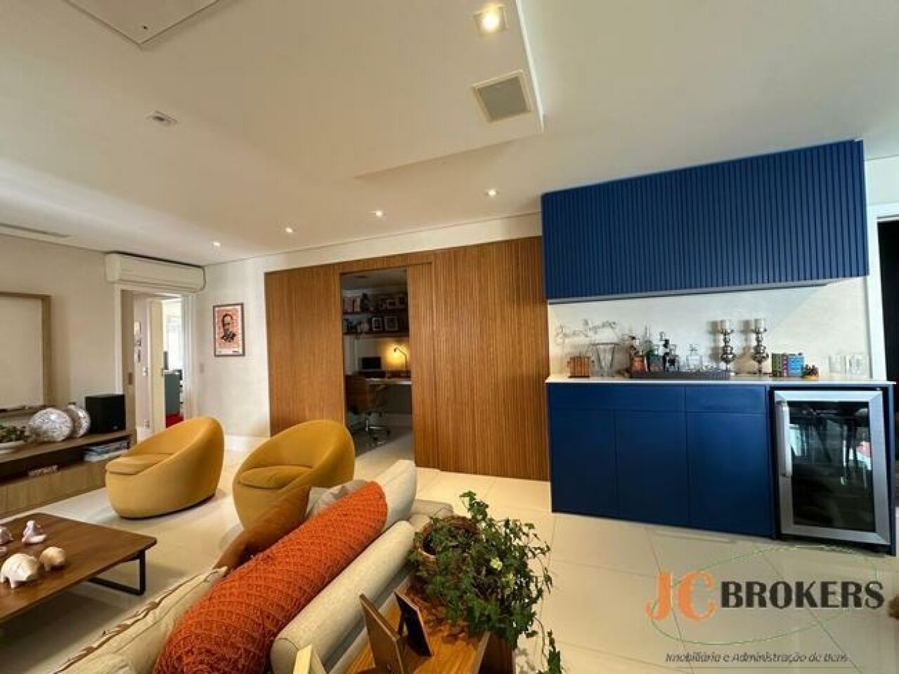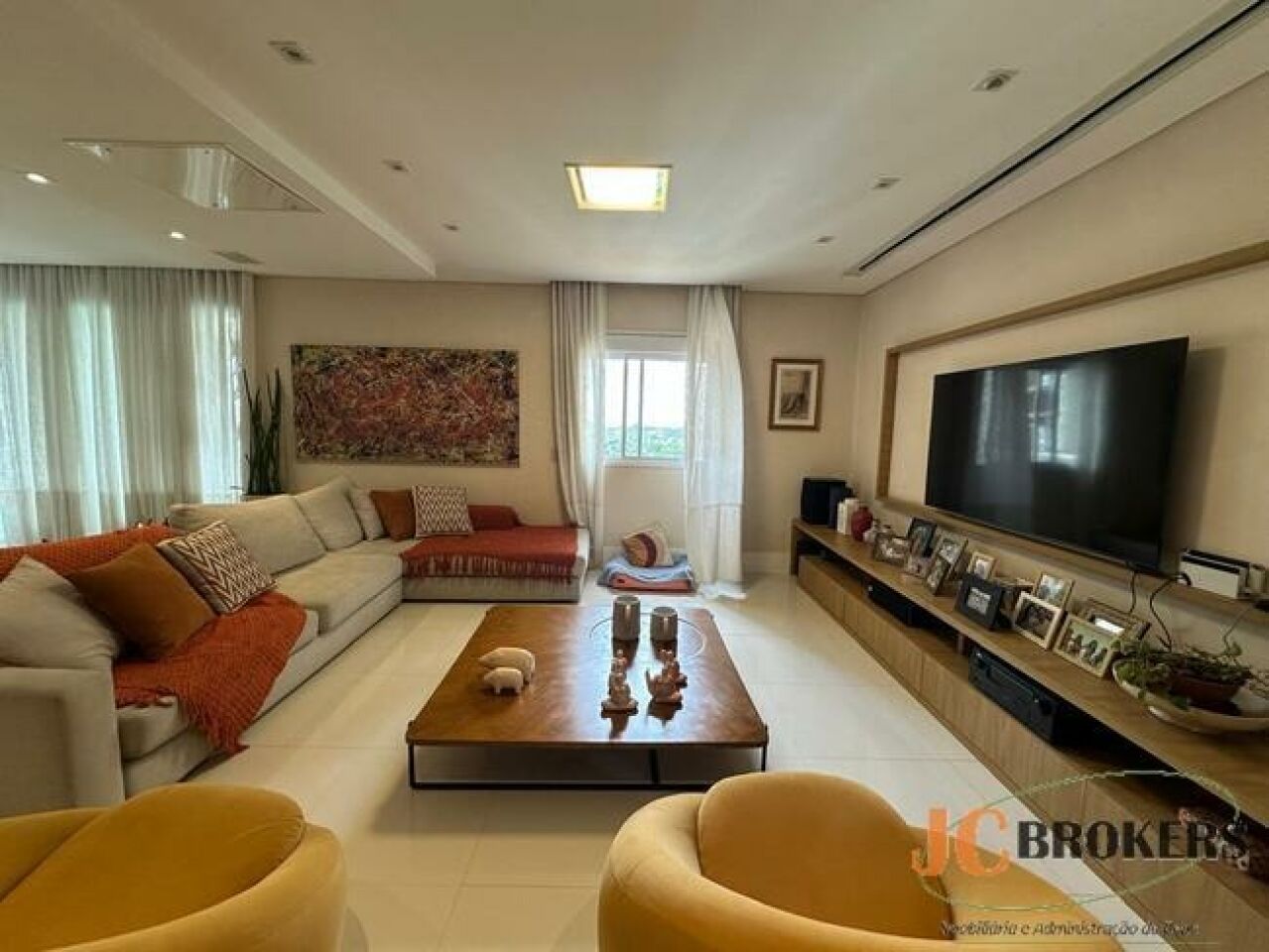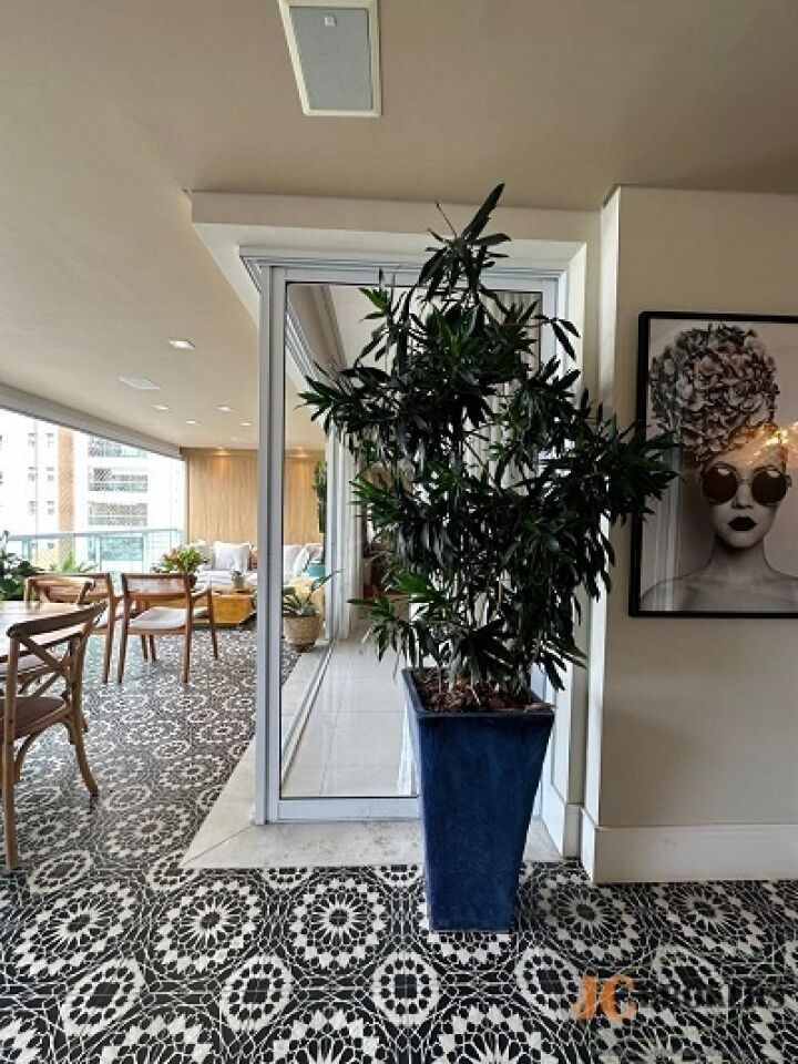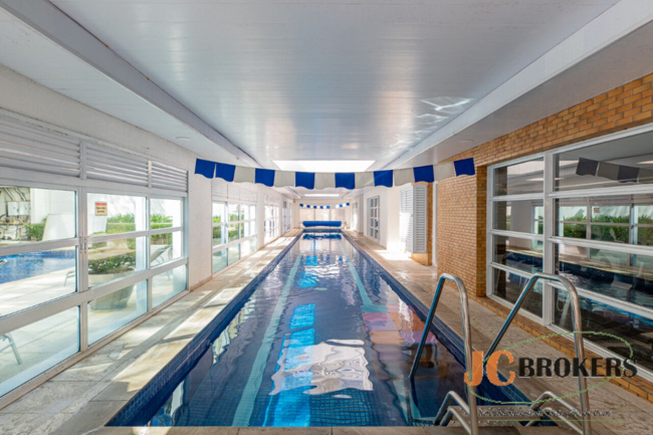 DESCRIÇÃO: Apartamento mobiliado com 190m² de área útil, amplo living com pé direito duplo, sala de TV, 3 suítes, 3 vagas, depósito, lavabo, 5 banheiros