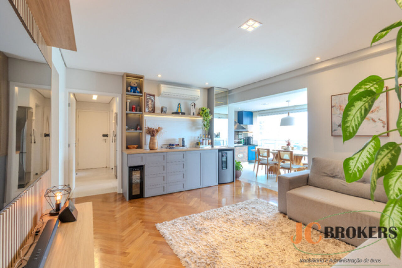 DESCRIÇÃO: Apartamento com 108m², sala em 2 ambientes: estar e jantar, cozinha planejada, varanda gourmet com churrasqueira, 3 quartos, sendo 1 suíte, espaço para home office, lavabo, lavanderia e banheiro de serviço, 2 vagas de garagem demarcadas e depósito. Ar condicionado split