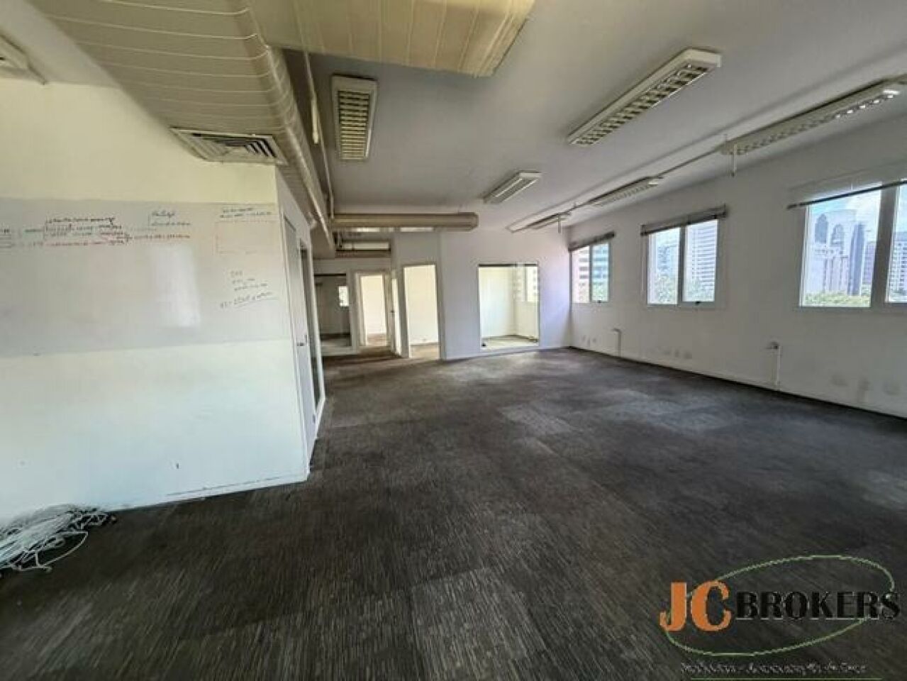 DESCRIÇÃO: Conjunto Comercial de 140m² de área útil, contendo amplo salão, recepção, copa, 4 salas, 2 banheiros, 5 vagas de garagem.